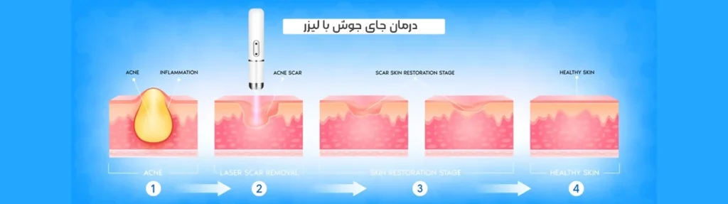 با استفاده از این روش به جای جوش ها نور لیزر تابیده می شود و رشد سلولهای جدید برای جایگزینی بافت اسکار تحریک خواهد شد. البته این نکته را نیز مد نظر داشته باشید که لیزر نمیتواند جای جوش را کامل از بین ببرد.